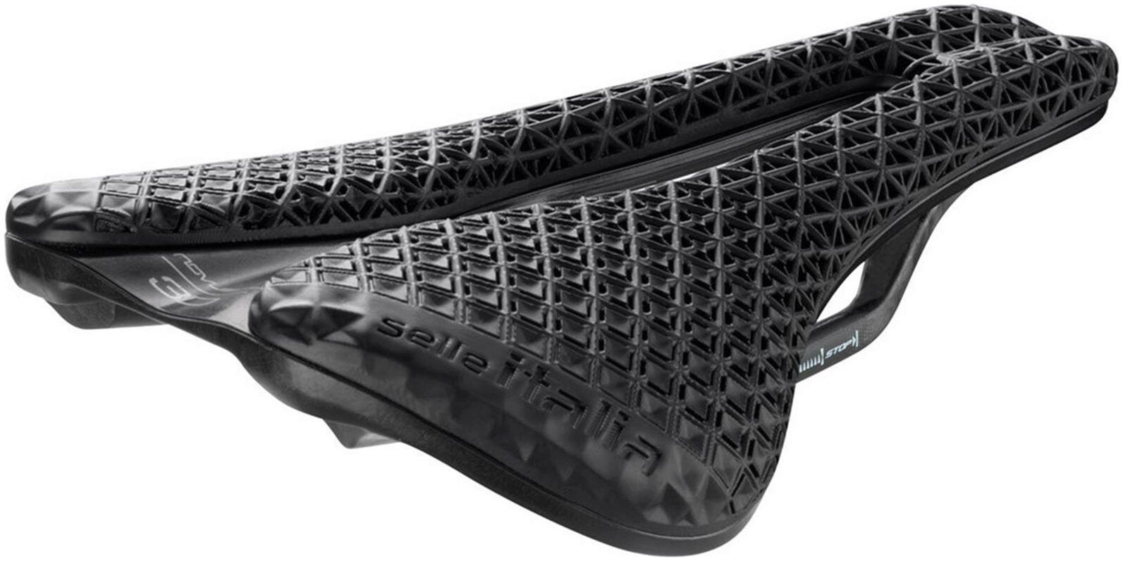 3D printed cover with dedicated and proprietary pattern featuring differentiated cushioning zones that provide progressive absorption over the entire surface area, ensuring the cyclist optimal comfort and support.