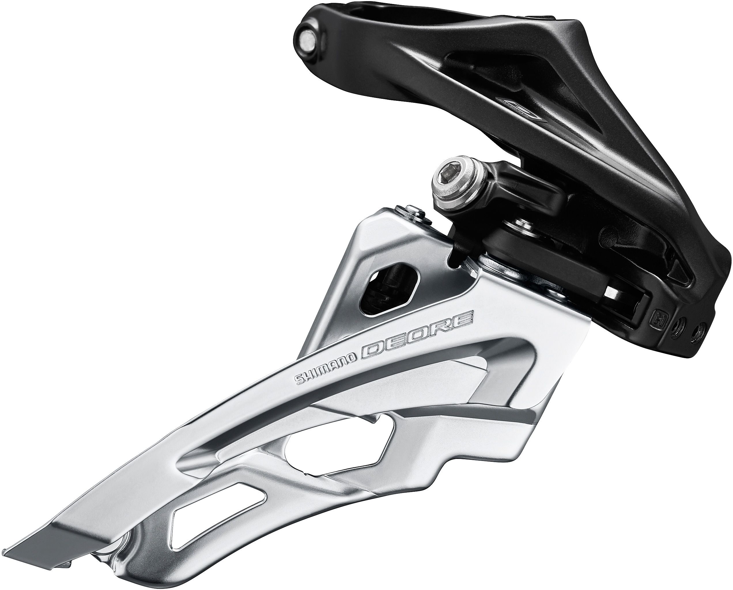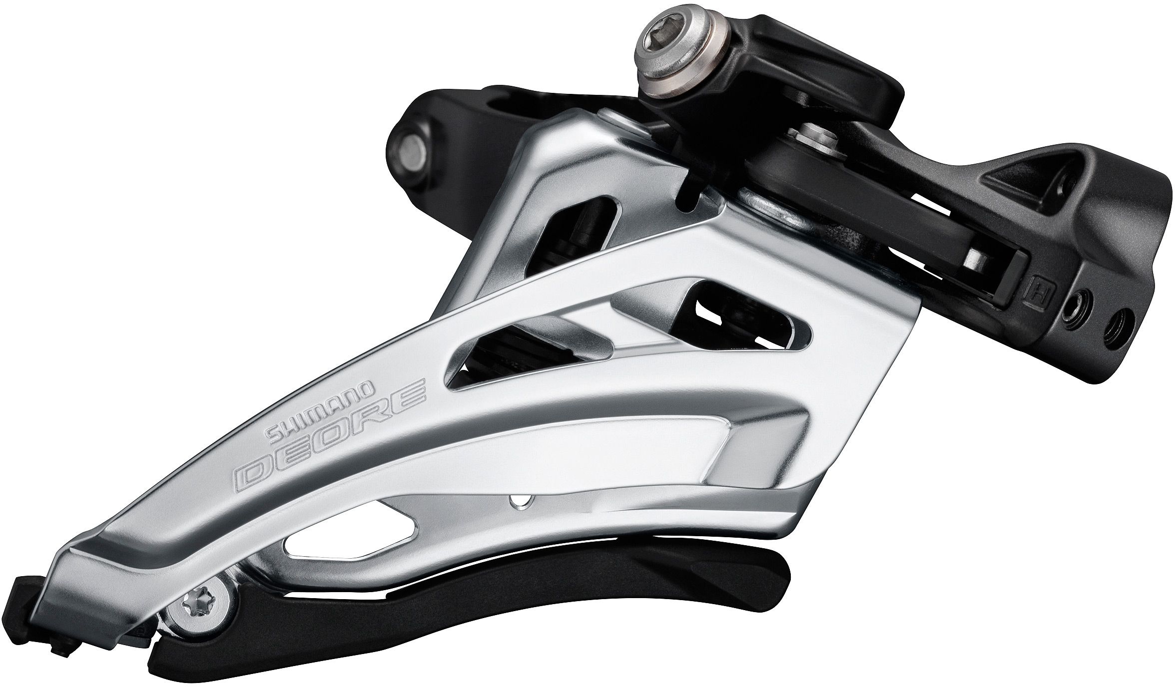 - Wide link design Dyna-Sys 10-speed Deore MTB front derailleur