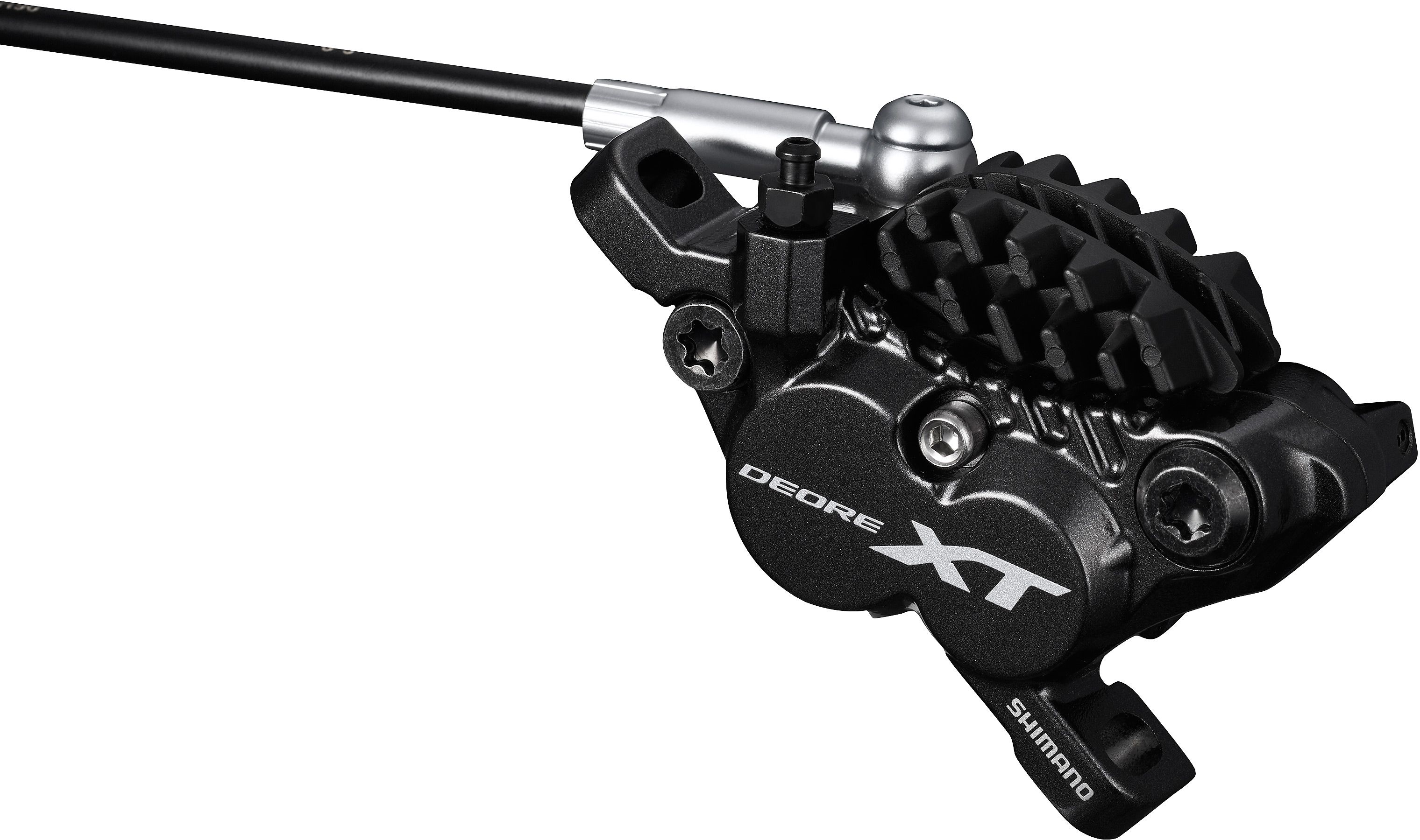 The 4-piston Shimano Deore XT hydraulic disc brake ups the stopping power by 10% over the M8000, 2-piston version making it perfect for aggressive trail riding.