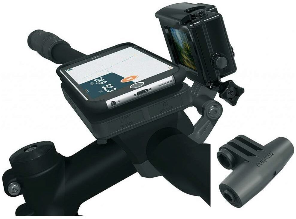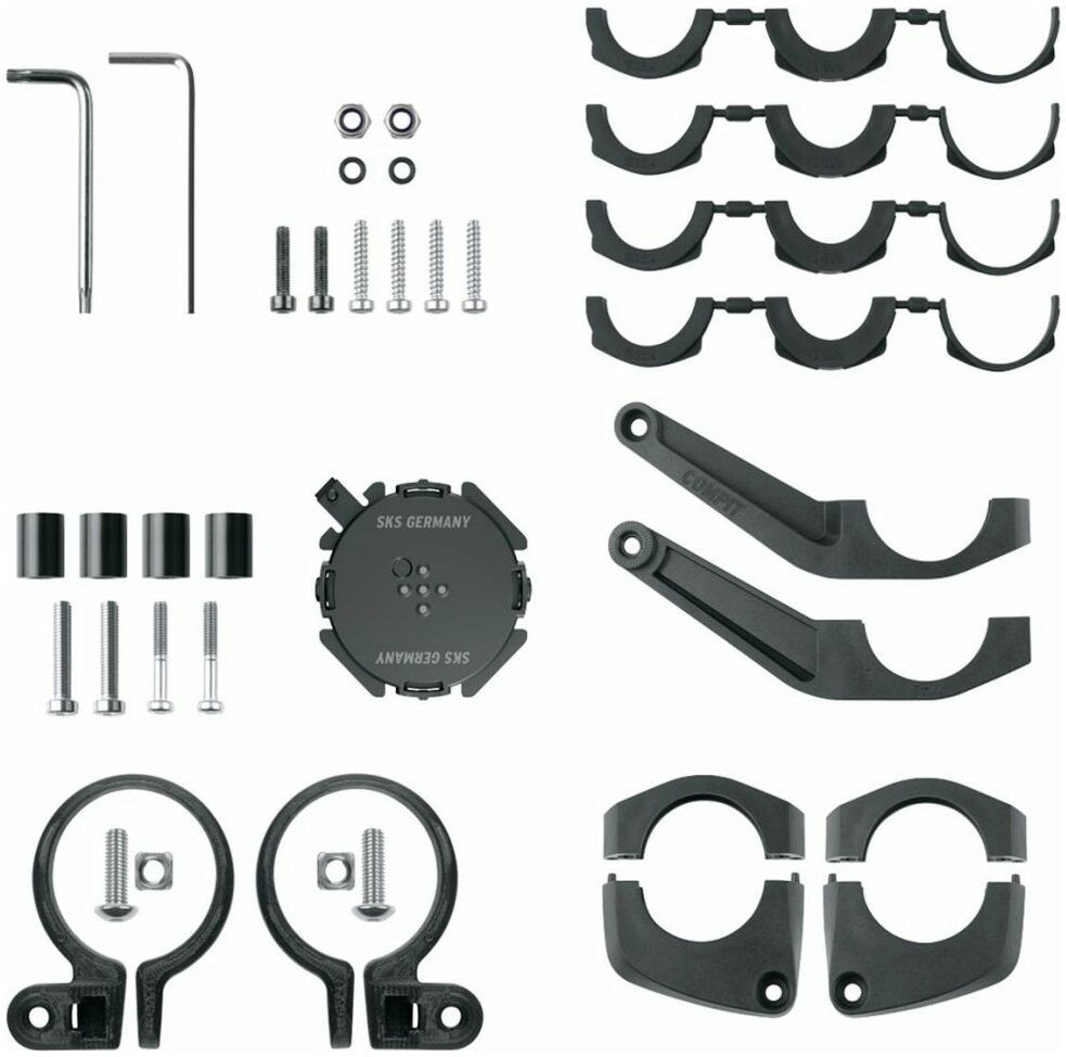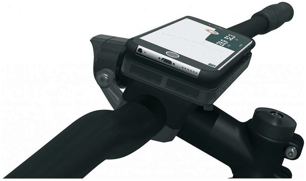 In addition to clamping arms, the complete set with accompanying spacers also offers the option of attaching the mobile phone holder to e-bikes with centre displays, so that the smartphone and on-board computer form a closed unit on the handlebar.