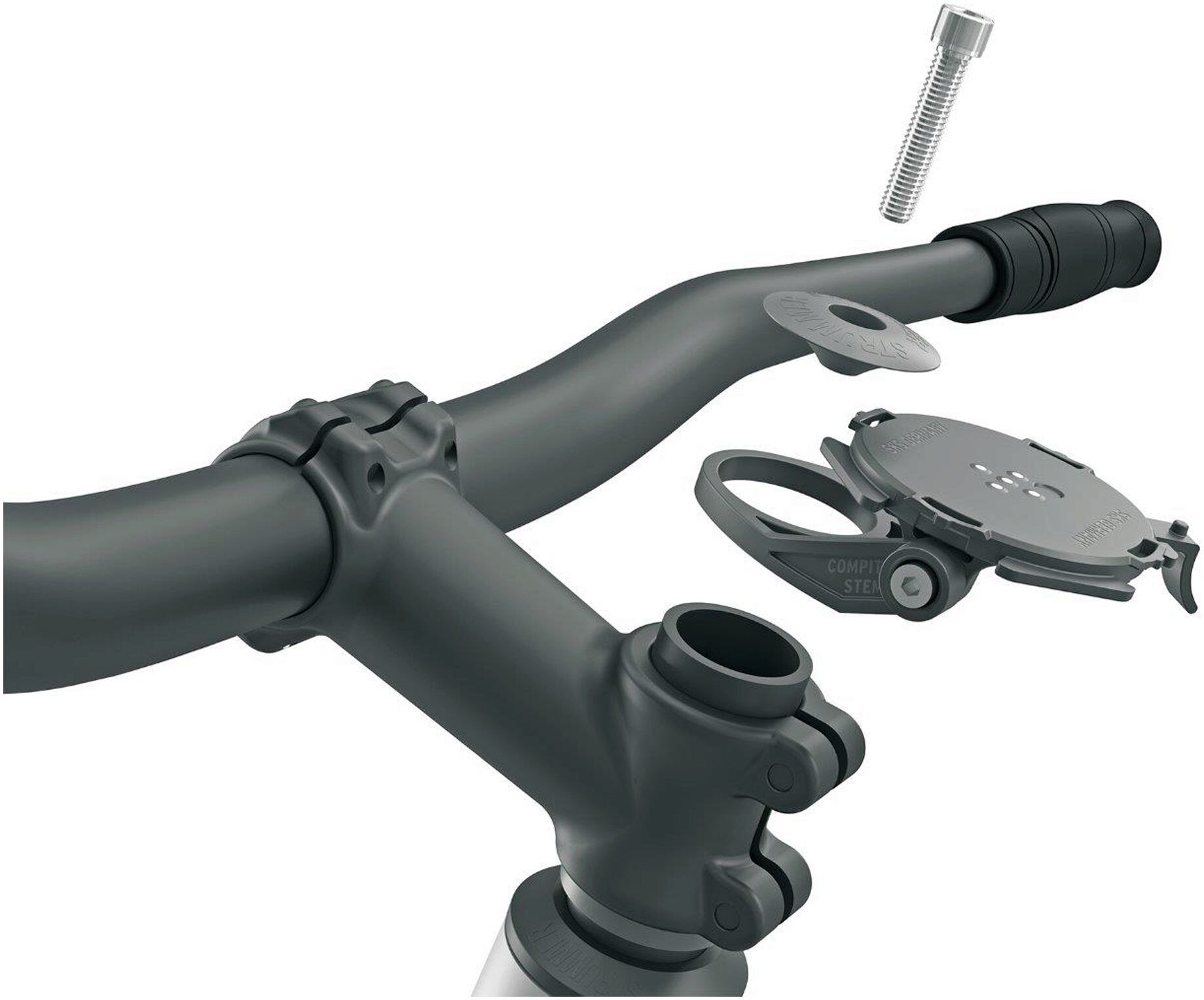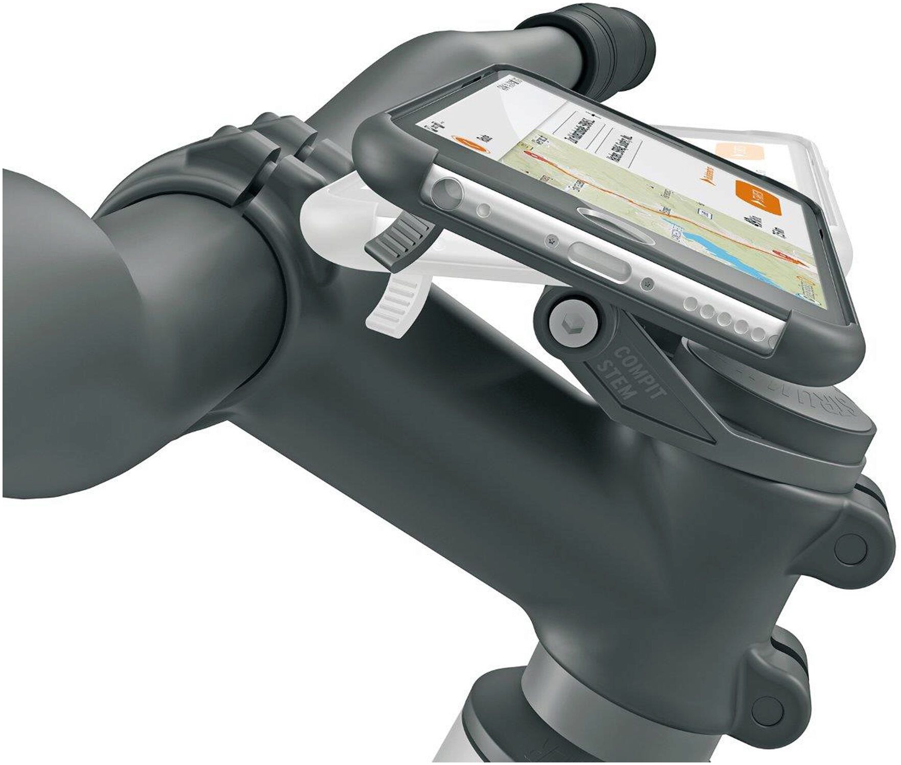 This means that the cockpit stays clean and the handlebars remain free. The bike mobile phone holder with its stem mounting also provides an ideal solution for using the Compit system for electric mountain bikes with 35 mm handlebar clamps, for example.