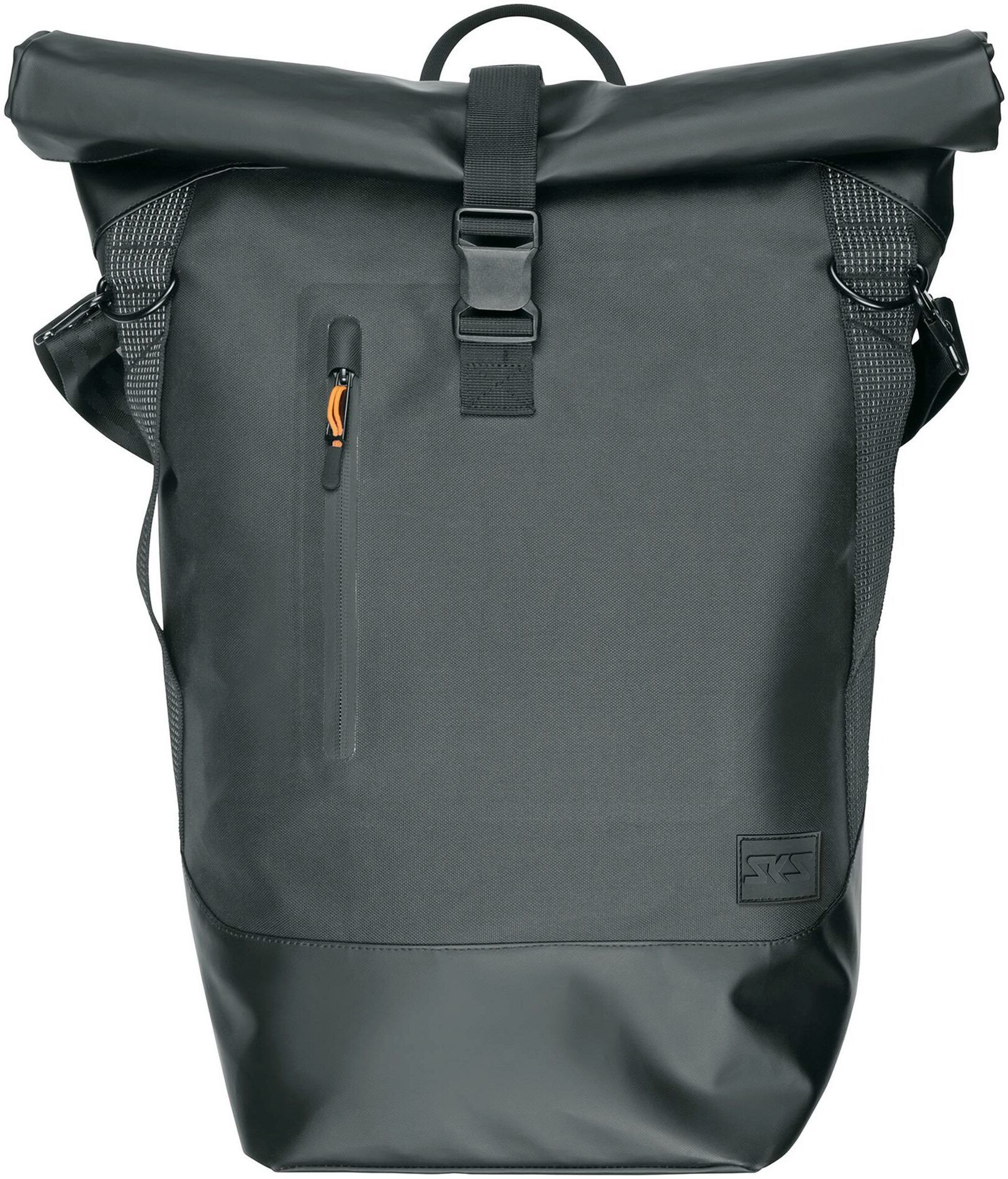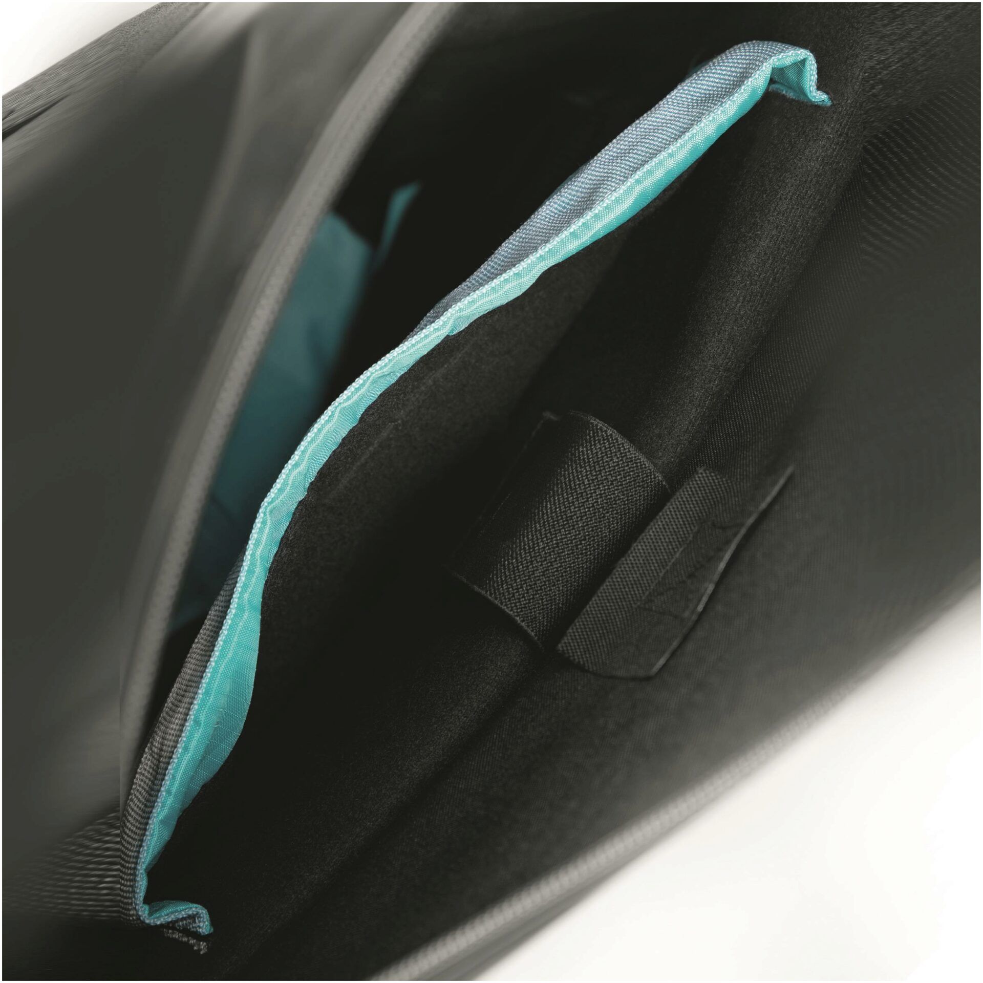 The roll-top with a zip and magnetic clip makes the Infinity Urban Side Bag flexible and adaptable in size. High-quality materials made of waterproof fabric and welded zips protect the contents from all kinds of weather. Other features include the padded laptop compartment (up to 15″), the reinforced rear side and underside of the bag, an easily accessible exterior compartment as well as reflector strips sewn onto the sides. The side bag can be removed from the pannier rack with just one hand and used as a shoulder bag thanks to the shoulder strap.