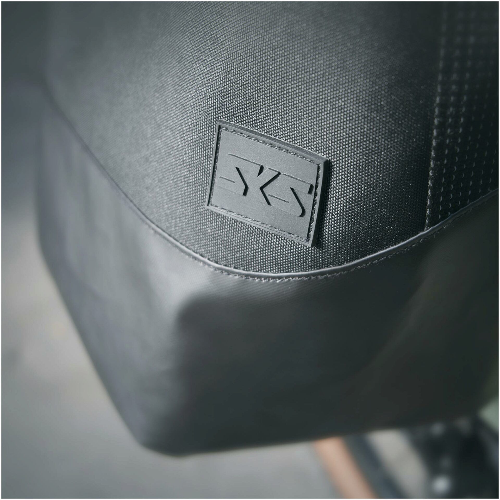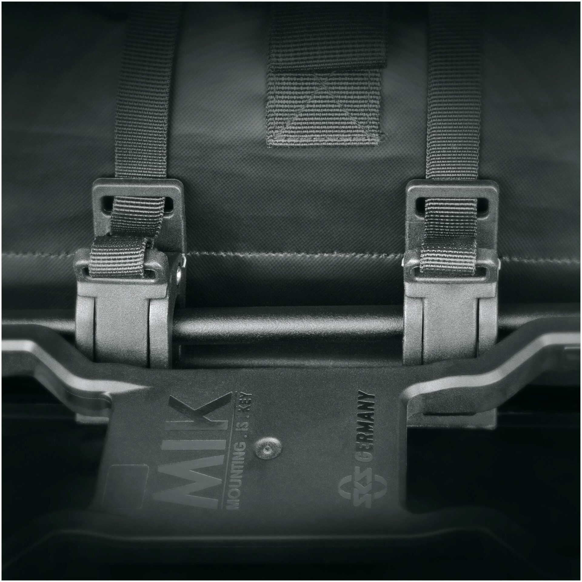 You can travel safely with your whole kit and caboodle! The chic Infinity Urban Side Bag offers plenty of space for equipment, a laptop or purchases with a capacity of approx. 20 Litres. It is attached to the stays of the pannier rack with two sturdy hooks and can also be fixed in place with the lower swivel hook. This also prevents the bag swinging sideways while cycling. Thanks to the large adjustment range of the hooks, the bike bag can be attached not only to the Infinity Universak, but also to almost any pannier rack.