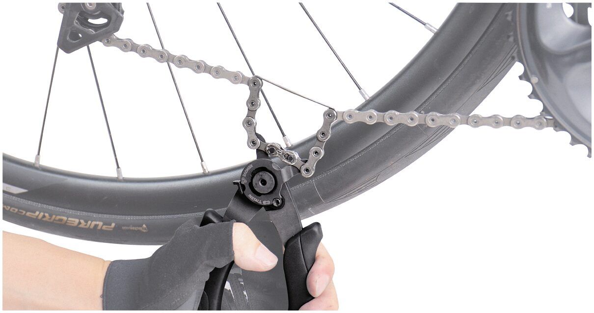 Shop-grade, pro-quality master link pliers for removing or installing all types of chain master links.