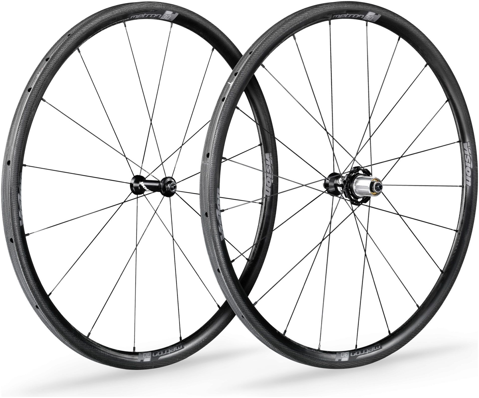 The Metron 30 SL is Vision’s climbing focused wheelset. Vision’s complete wheel system has a 26mm rim width, direct pull bladed spokes, 6 sealed cartridge bearings in P.R.A. hubs, ABS brass nipples, 2 to 1 lacing, CFD / wind tunnel proven aerodynamics. All Metron SL rim brake wheels also feature a laser-etched micro-dot brake surface texture that dramatically improves braking performance for safe, sure and predictable stopping power in all weather conditions. For a proven and reliable performance wheelset, look no further than the Vision Metron SL.