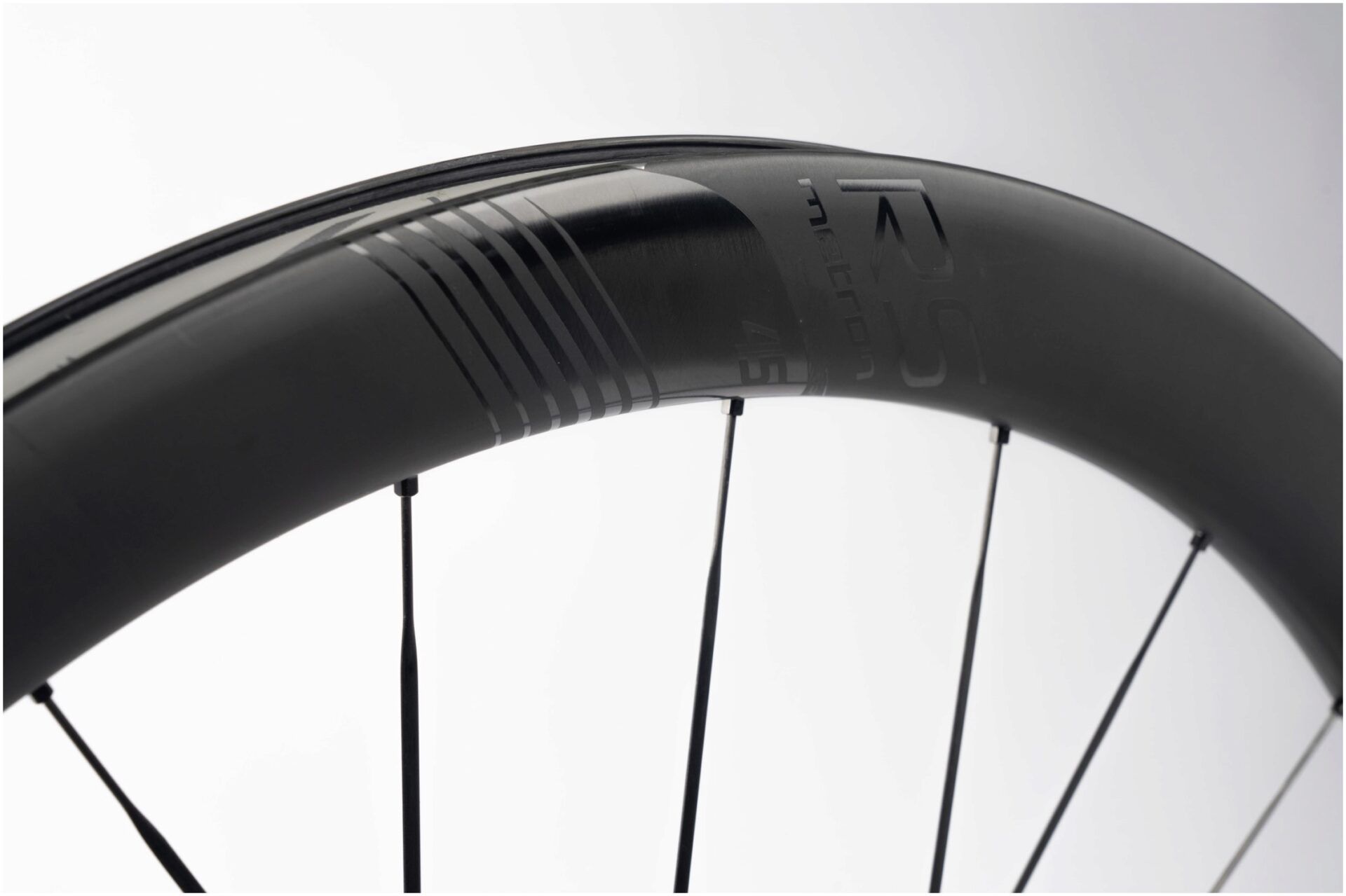 - Full carbon 45mm depth, 23mm inner width clincher rim