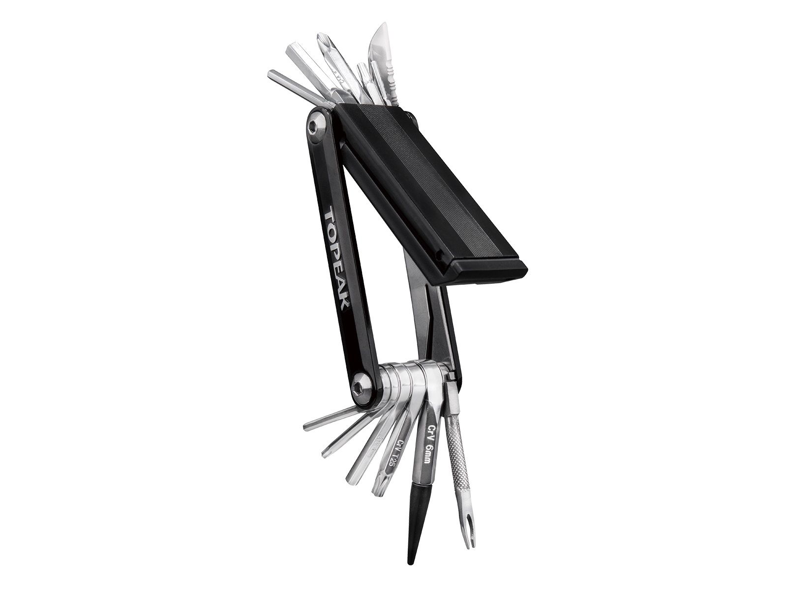 18 function, pro-quality, precision mini tool with integrated tubeless tire repair functions. Tubeless repair tools and tire repair plug compartment store inside the tool body for a streamlined profile. Perfect for any road or trailside repair.