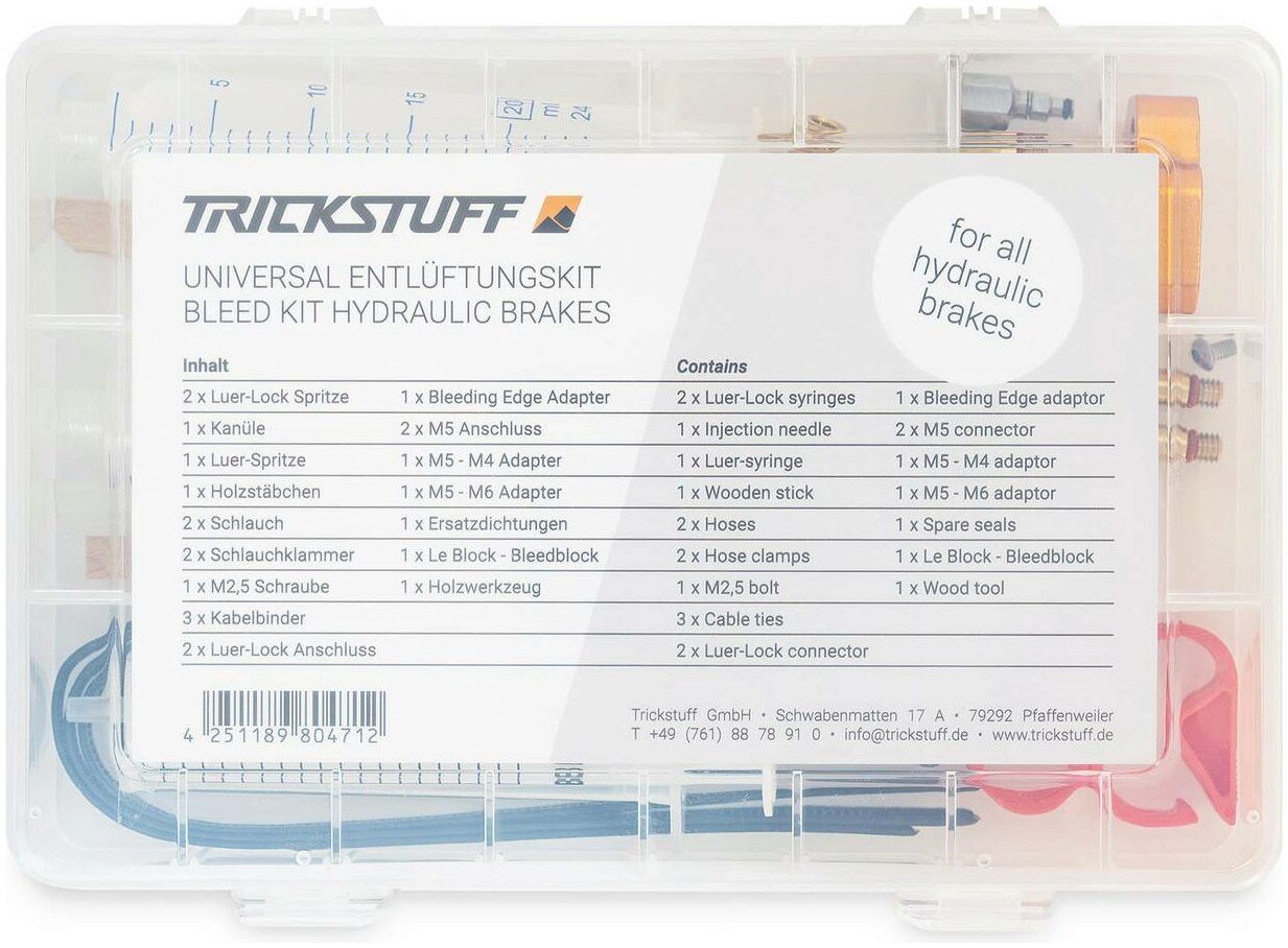 The Universal Bleedkit contains all of the necessary fittings, syringes and hoses to bleed most available hydraulic braking systems, enabling you to change the brake fluid yourself.