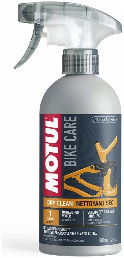 - MOTUL Dry Clean is a rinse-less cleaner for bicycles which leaves a waterproofing protection