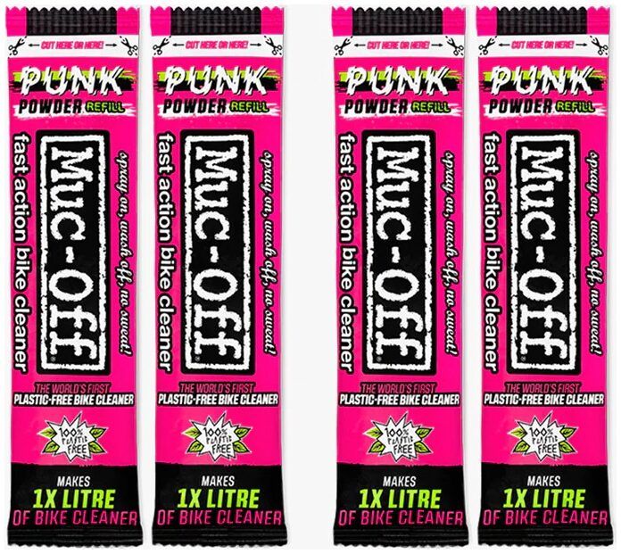 Muc-Off's Punk Powder comes in a 30g sachet that makes 1L of Nano Tech Cleaner. Just add water wherever you are.