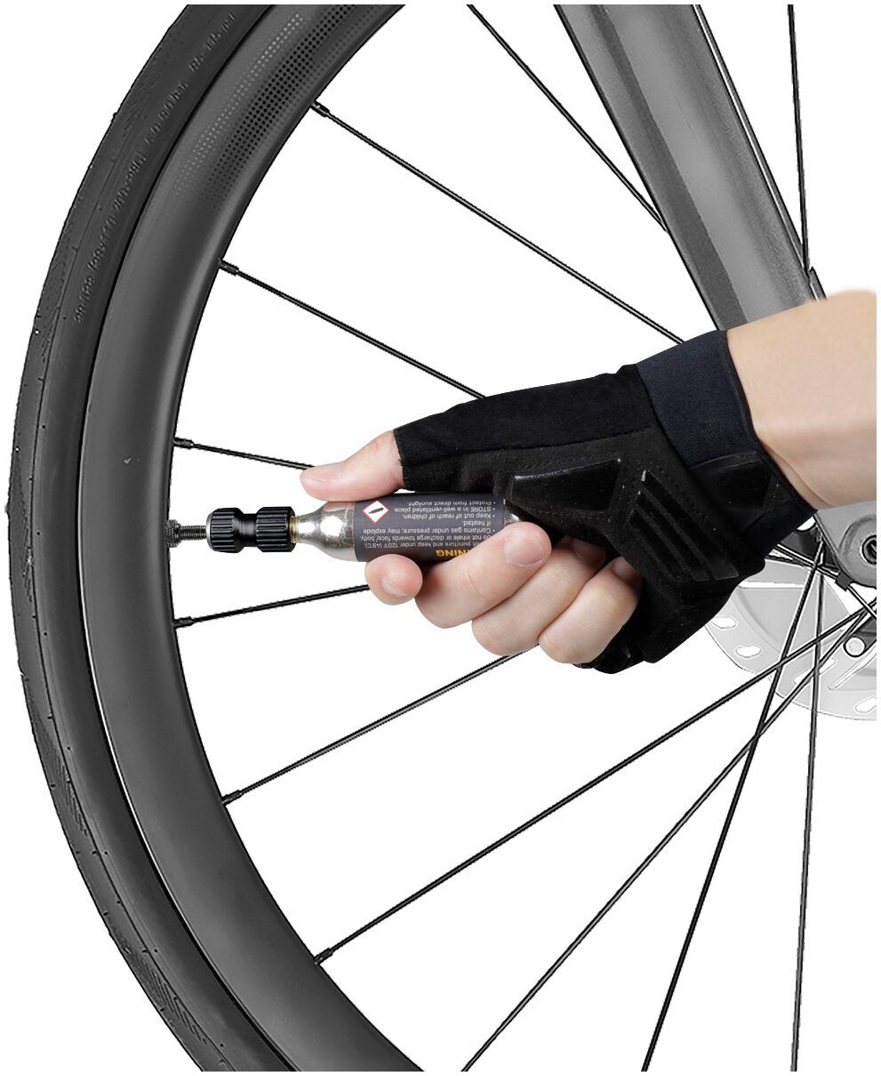 An extremely compact, lightweight and easy-to-use CO2 inflator. Precision CNC machined aluminium inflator fits Presta and Schrader valves and works with threaded 16g or 25g cartridges. Simply screw the cartridge in tight and then screw the head onto the valve, unscrew the cartridge to release all the gas from the CO2 cartridge in seconds.