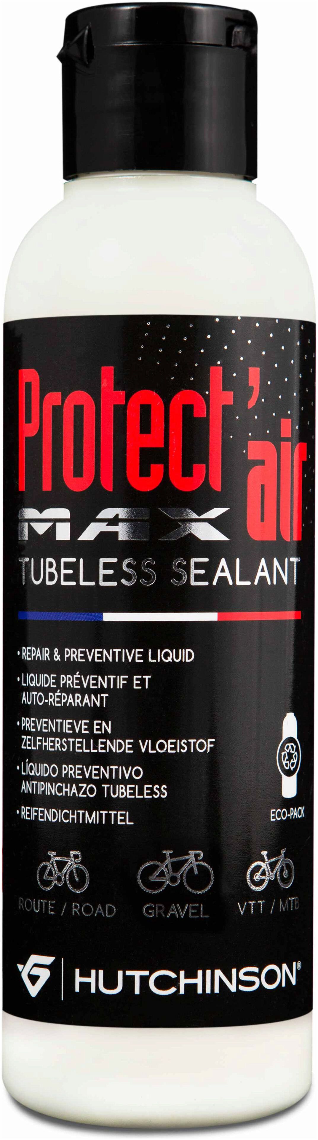 Protect'Air Max is a latex sealant that can be used for Road Tubeless as well as MTB tyres. It is compulsory for Tubeless Ready and Tubeless Protect'Air Max tyres as it guarantees airtightness. If there is a puncture, the sealant acts to fill the hole (until 3mm) and repair the tyre definitely.