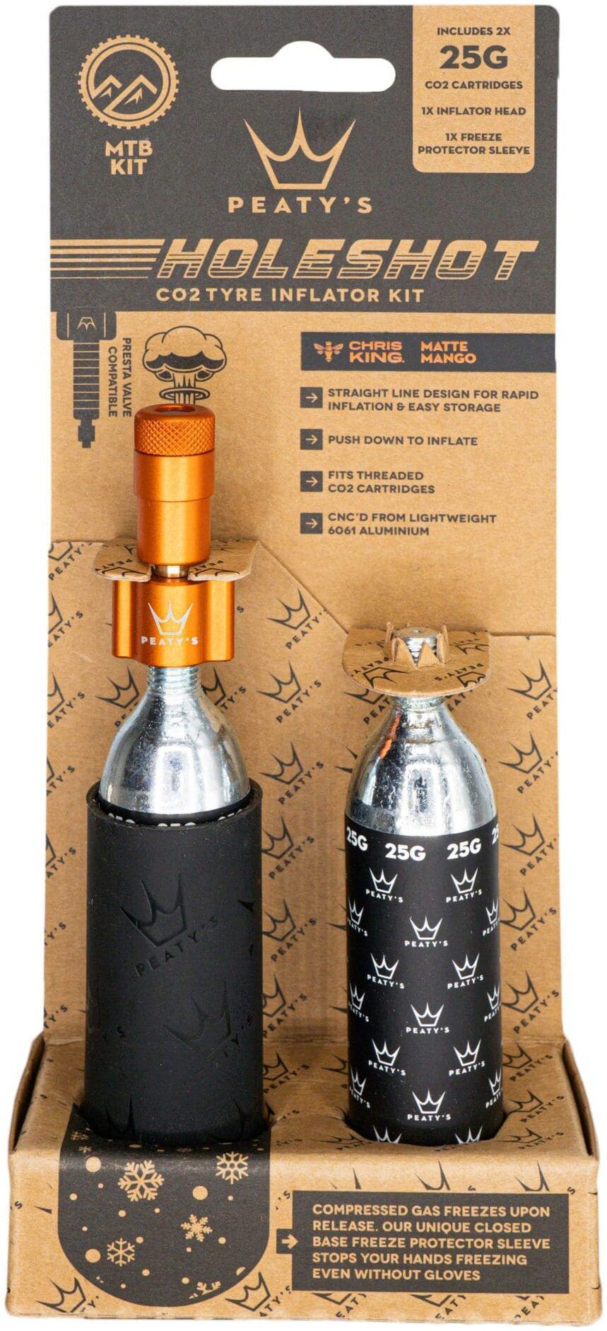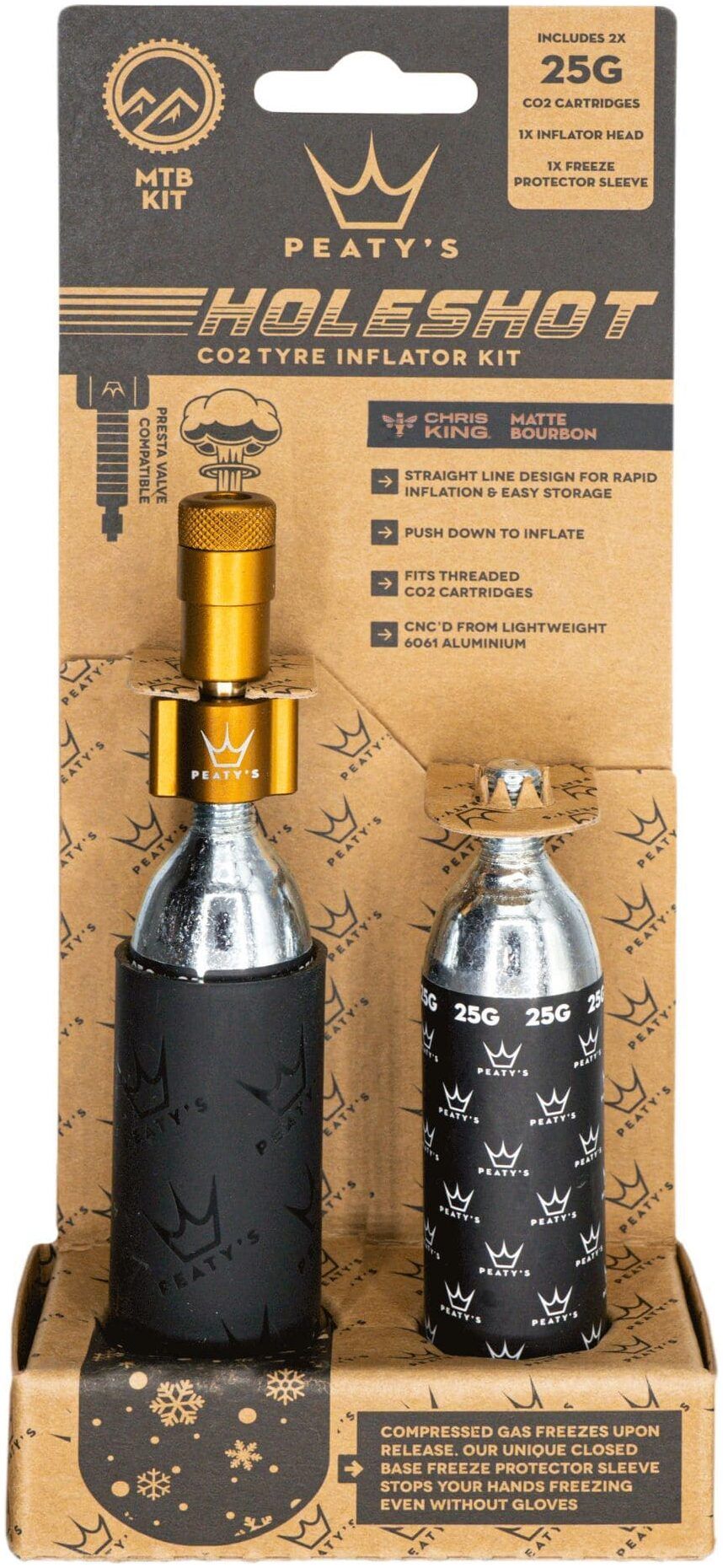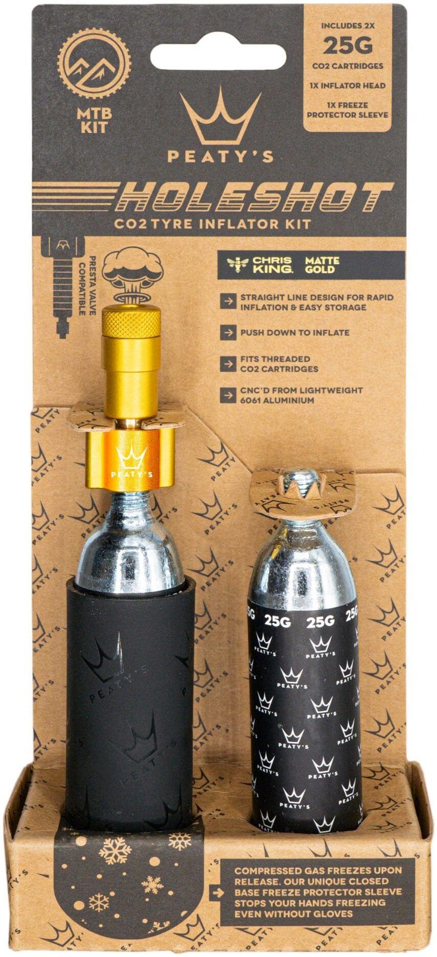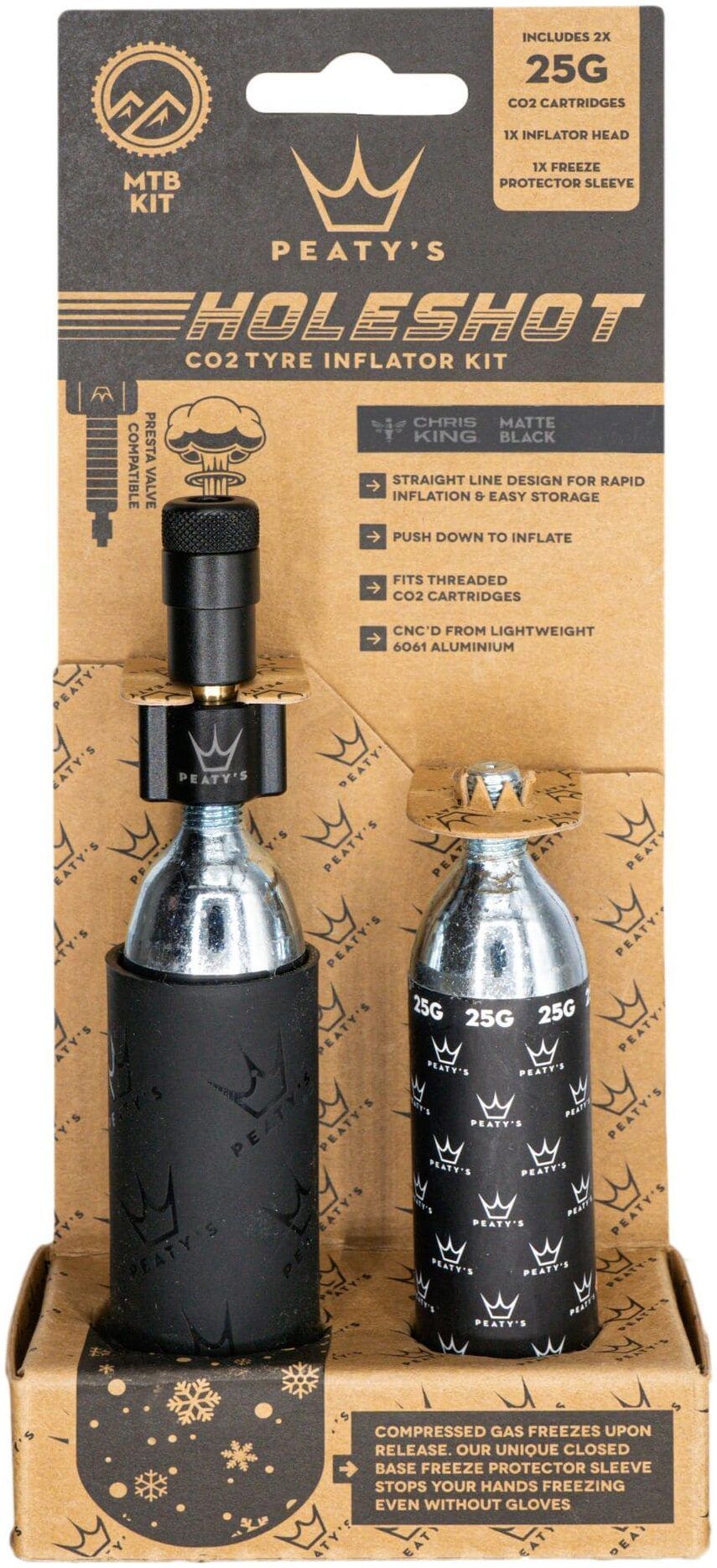 Everyone knows that a straight line is the fastest line! That's why Peaty's made their holeshot CO2 tyre inflator straight, rather than bent at 90 degrees. This straight line design enables faster airflow for rapid inflation, and creates less stress on your tubeless valves when you're using it because you're coming at the valve straight on rather than at a 90 degree angle.
