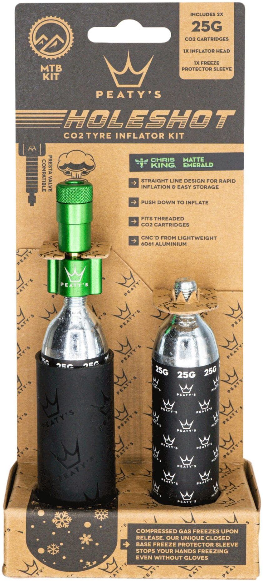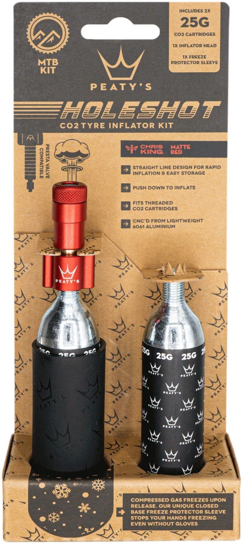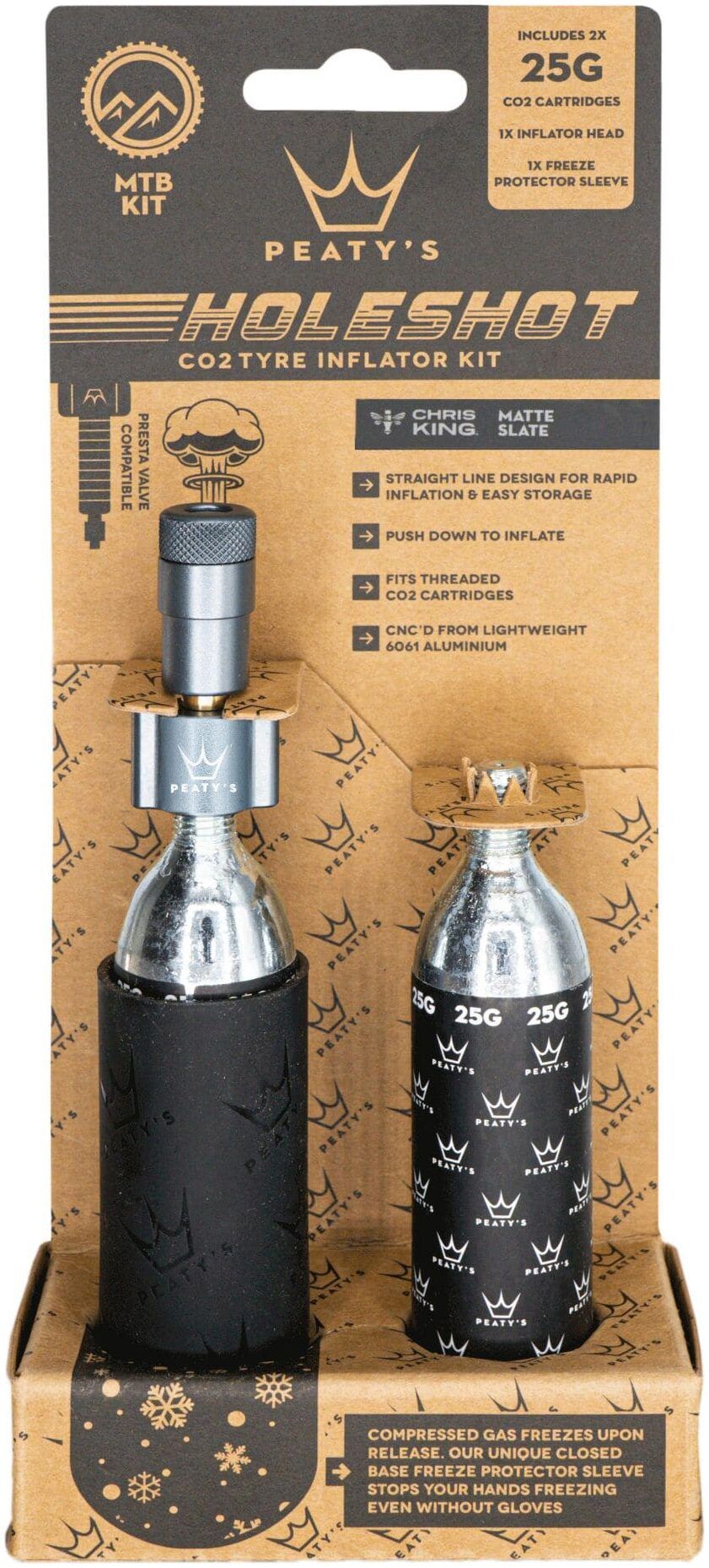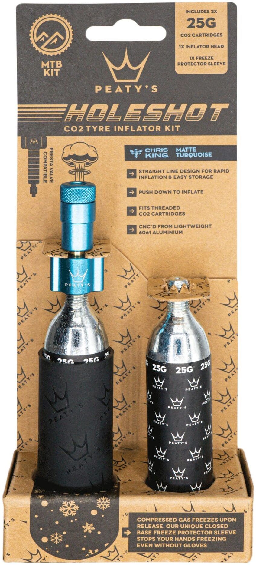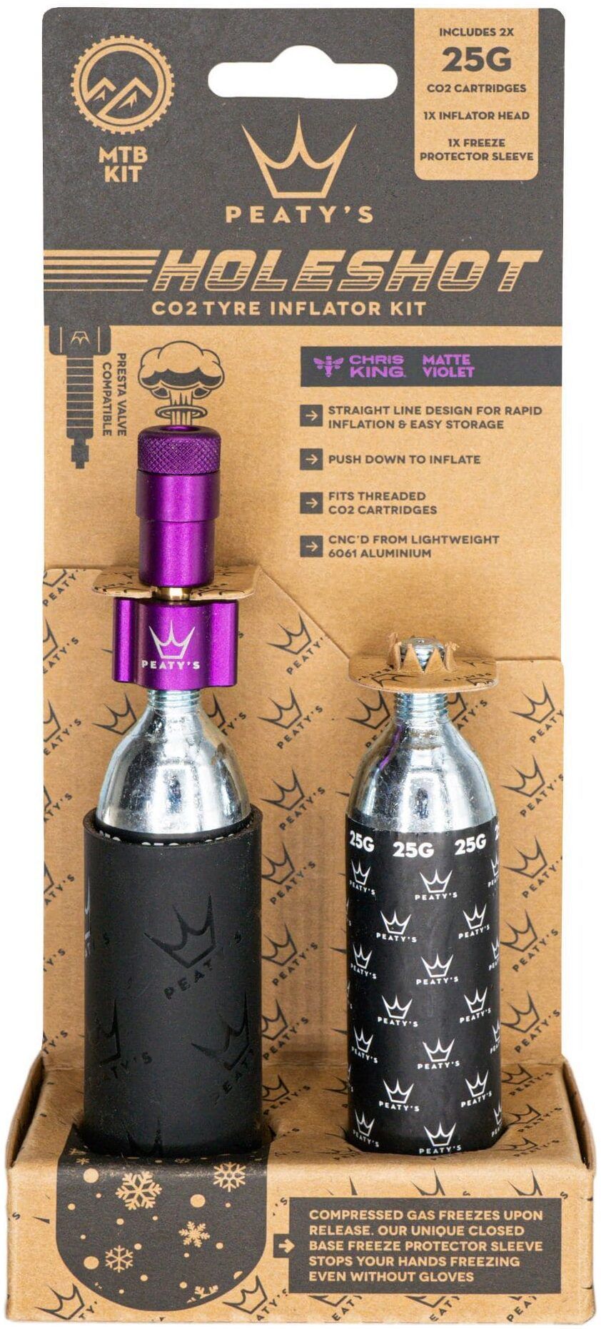 Everyone knows that a straight line is the fastest line! That's why Peaty's made their holeshot CO2 tyre inflator straight, rather than bent at 90 degrees. This straight line design enables faster airflow for rapid inflation, and creates less stress on your tubeless valves when you're using it because you're coming at the valve straight on rather than at a 90 degree angle.