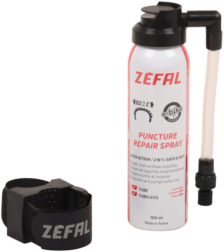 Repair Spray repairs and instantly re-inflates flat tyres without having to change the inner tube. This type of rapid and simple fix allows you to continue your ride without having to do a repair. The fix isn't long-lasting as the product that is injected dries out in a few days. It is advisable to change the inner tube or to repair it. The Repair Spray becomes less effective against punctures larger than 2mm.