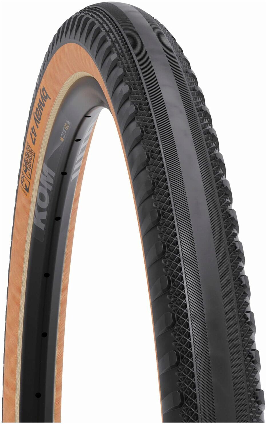 Byway is the gravel tire of choice for long days of endless exploration when pavement, hardpack and gravel are all on the menu. Staying true to the adventure road end of its usage, a slick centerline and angular grooves encourage swiftness on any pavement required to get to the good stuff. Intermediate, diamond-shaped peaks provide steadfast traction under power, while consistent and more substantial side knobs extend down the sidewall to provide cornering confidence and puncture protection.
