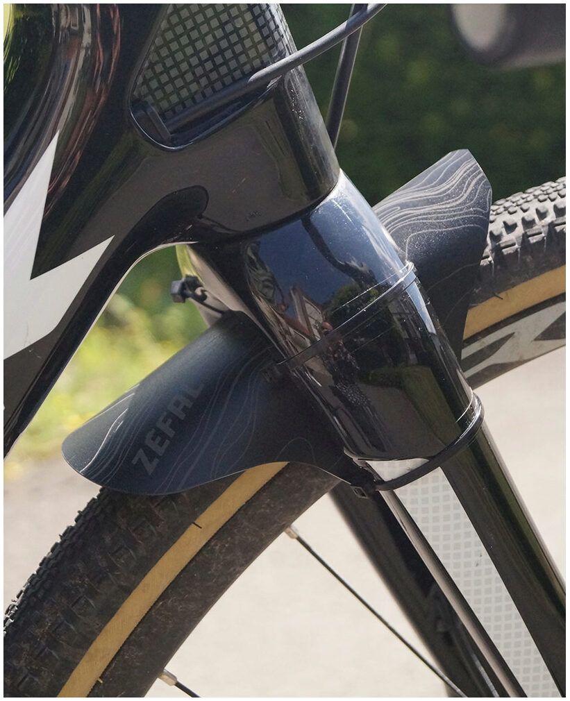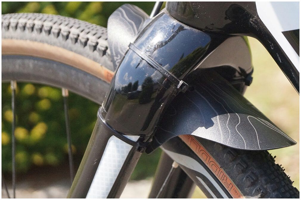 Discreet and aesthetic, this front mudguard has been designed to efficiently protect the bearings and head tube of your gravel bike. Located on the fork just above the tyre, it keeps your bike clean and avoids the bearings deterioration by preventing the infiltration of dirt and sand. Universal, its installation is easy thanks to cable ties and requires no tools. Protective strips are provided to protect the bike's paintwork.