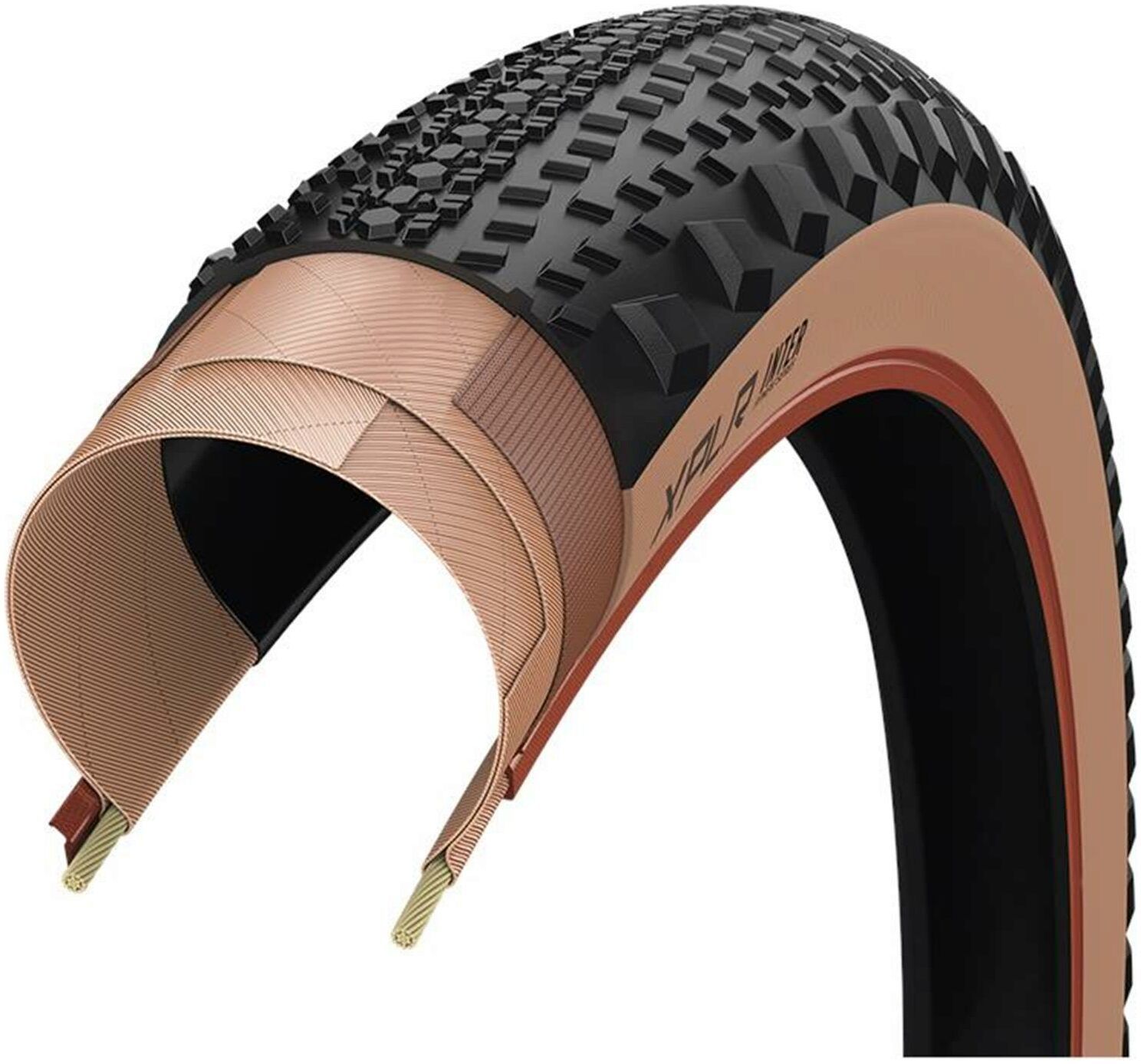 The Goodyear XPLR Inter is part of gravel-game-changing wheel and tire system. This versatile gravel tire is designed for Zipp’s ultra-wide 303 XPLR S and SW wheelsets to provide a fast wheel and tire combination on any gravel surface. Capable in dry to mixed conditions. Wheel systems for gravel today are mostly slightly stronger versions of what exists on the road: light, stiff, narrow, and aero. The problem is that riding on gravel induces harmful vibrations that slow you down and increase fatigue over time. In addition, gravel tires generally negate the aerodynamic advantages of traditionally narrow road rims. The new XPLR wheel and tire system takes an entirely new approach and optimizes the dimensions of the components to achieve the fastest setup on the market. Besides unsurpassed aero benefits for gravel, the resulting width of the rim also enables lower tire pressure, which helps filtering out vibrations for extra energy savings. The XPLR Inter offers the most versatile gravel setup with 303 XPLR and can be ridden in most situations. Its tight pattern in the center provides fast rolling, while the bigger side blocks ensure grip and confidence when cornering. The light and supple construction enhances ride quality. M:Wall reinforcements in the sidewalls provide puncture protection against cuts and pinch flats, allowing the rider to get away with the lowest possible air pressure. And finally, the dimension of tire beads is designed to ensure convenient assembly and safe retention on Zipp TSS rims. Only approved tires can be used on the XPLR wheels.